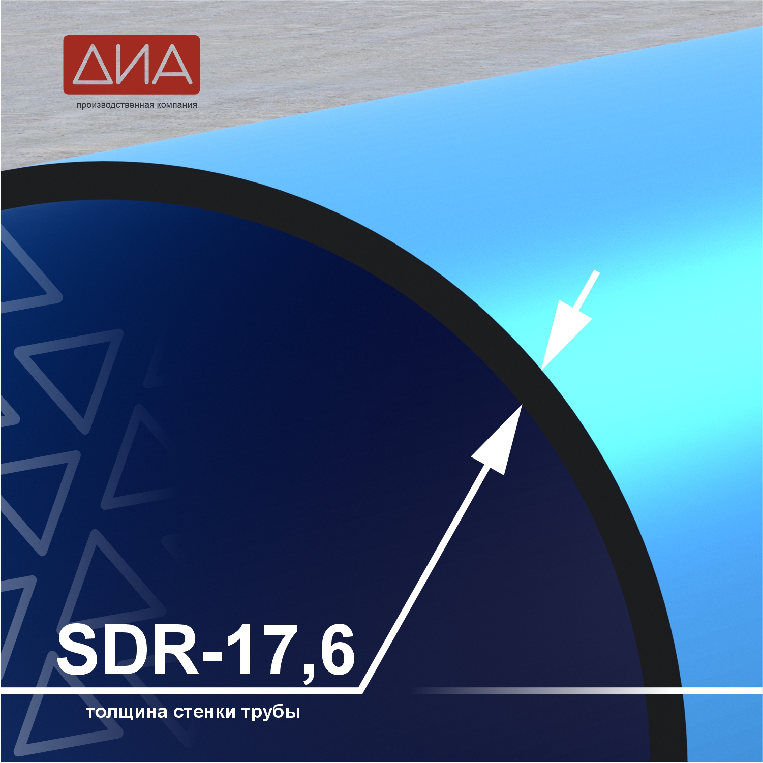 Технические условия» (с Поправкой, с Изменениями N 1, 2).соответствует классу ПЭ100-RC;ПЭ100. ПНД трубы для водоснабжения обладают долгим сроком службы, стойкостью к химическому воздействию и коррозии. Гарантия от производителя 2 года со дня изготовления. Низкая стоимость, быстрое производство и монтаж, отсутствие токсичных материалов в трубах делают их популярным строительным материалом в сфере водоснабжения. Труба ПНД ПраймЛэй SDR-17.6 с диаметром d-315 мм мм и толщиной стенки 17.9 мм имеет номинальное (условное) давление 9.5 атм.