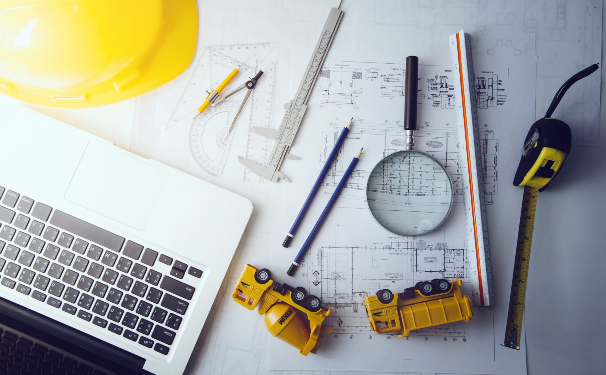 photo free license: vecteezy.com/photo/11331008-two-colleagues-discussing-data-working-and-tablet-laptop-with-on-on-architectural-project-at-construction-site-at-desk-in-office